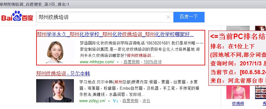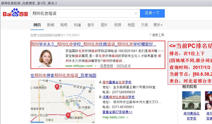 在此,首先感谢郑州化妆培训学校对网站优化人员的信任和支持,我们也会持续维护您的网站!其次感谢云访客平台,为众多优化师和客户提供一个合理的优化平台!